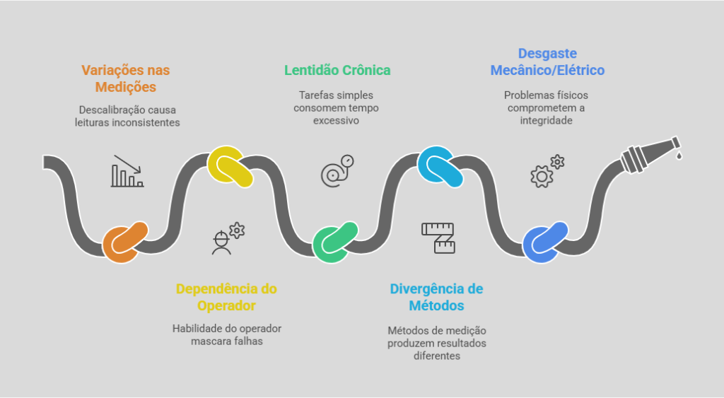 Geralmente é resultado de descalibração, desgaste mecânico, falhas eletrônicas, oxidação de componentes ou uso inadequado. Até pequenas vibrações ou variações térmicas podem afetar a leitura.