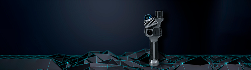 Captura uma área mais ampla de digitalização na configuração portátil padrão. O ângulo de inclinação projetado foi testado repetidamente para minimizar falhas e lacunas nos dados.